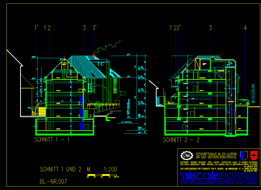 Planung für Architektengemeinschaft E.A.Gärtner + R.Stiens, Essen und Gebr. Schärli, Luzern.