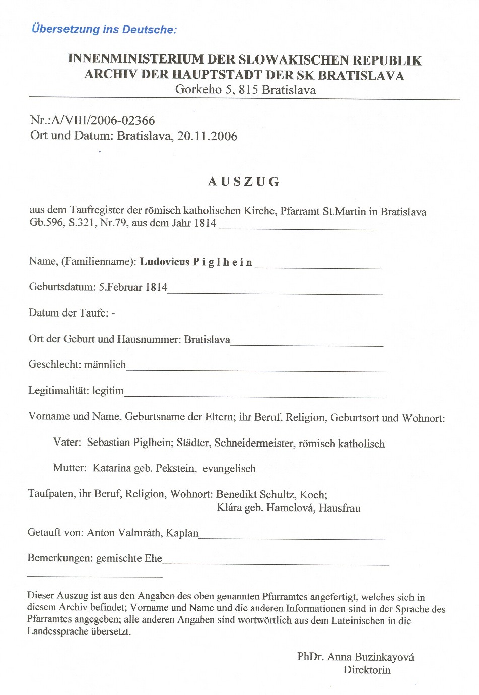 als Teilhaber in die Firma ein, doch schied letzterer bereits im Jahre 1874 aus und Ludovicus Piglhein führte die Firma, nachdem sein Vater im Jahre 1876 gestorben war, unter der Firmenbezeichnung