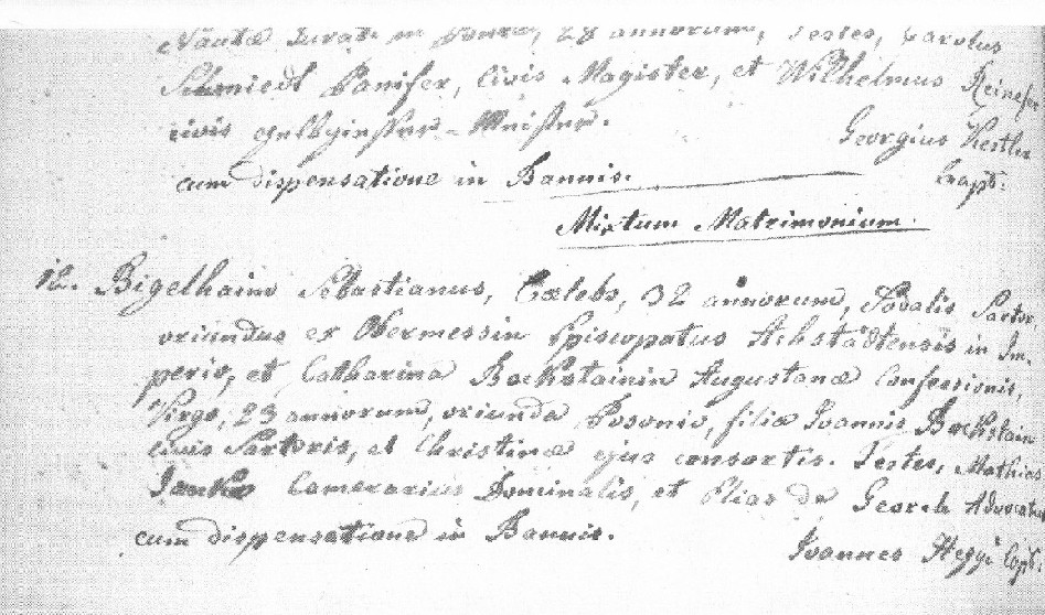 | In der o.a. Ortsangabe "Obermessin Episcopatus Achstädtensis in Imperio" bezieht sich laut Aussage von Diözesenarchivar Dr. Bruno Langenfelder das Wort "Imperio"auf das Heilige Römische Reich. Frau Dr. Buzinkayova in Bratislava übersetzte es irrtümlicherweise als "Österreich" der KuK-Monarchie. |