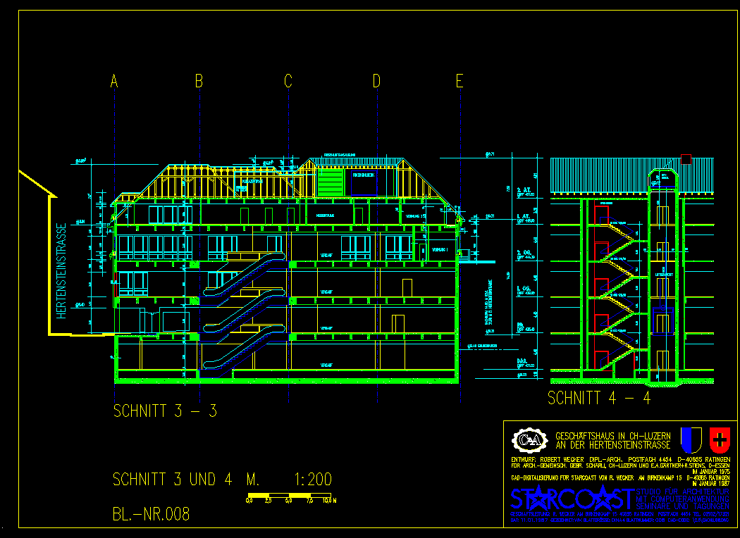 Planung für Architektengemeinschaft E.A.Gärtner + R.Stiens, Essen und Gebr. Schärli, Luzern.