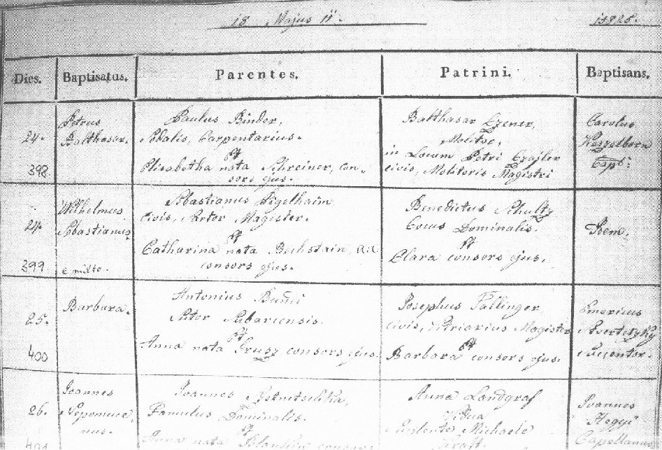 Am linken Bildrand ist die Kirche "Dom sv. Martina" eingetragen, in der Loudovicus Piglhein getauft wurde.