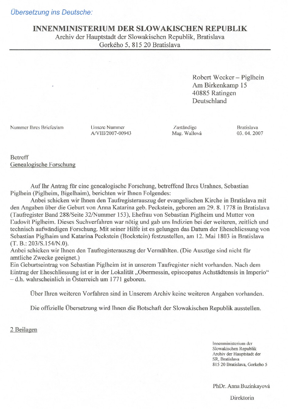 verfasst von Frau Mali Piglhein (Frau von Robert Piglhein), Abschrift von Robert Wecker,